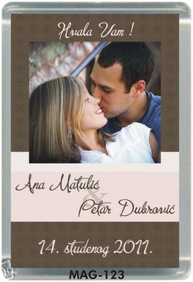 Akrilne (plastične) magnete za vjenčanja izrađujemo u dvije dimenzije: