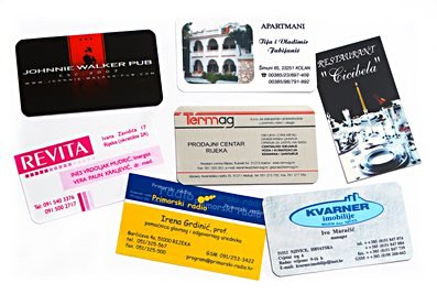 Izrađujemo obične (kartonske) i plastificirane (mat i sjajne) posjetnice s mogućnošću tiska na poleđini.